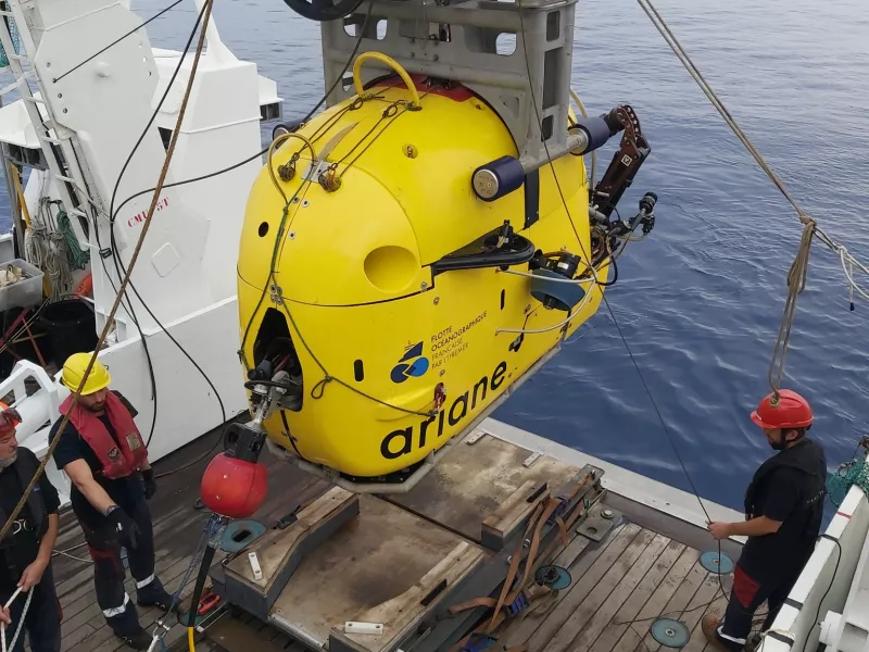 Πολύτιμος βοηθός στην έρευνά τους είναι το ρομποτικό όχημα Ariane, το οποίο έχει τη δυνατότητα να καταδυθεί σε βάθος μέχρι 2.500 μέτρα και να παραμείνει εκεί έως και έξι ώρες σε κάθε κατάδυση. Οι 4Κ κάμερες που διαθέτει καταγράφουν τη μορφολογία του υποθαλάσσιου πυθμένα και επιτρέπουν στους ερευνητές να δουν και να μελετήσουν το ανάγλυφο με μέγιστη ταχύτητα τα 0,5 μέτρα ανά δευτερόλεπτο. Εξοπλισμένο με δύο μηχανικούς βραχίονες, είναι επίσης σε θέση να συλλέξει ιζήματα σε σωλήνες μήκους 30 εκατοστών που ονομάζονται πυρήνες. Οι οκτώ πυρήνες με ιζήματα που συλλέχθηκαν θα βοηθήσουν στη χρονολόγηση του υποθαλάσσιου αναγλύφου.