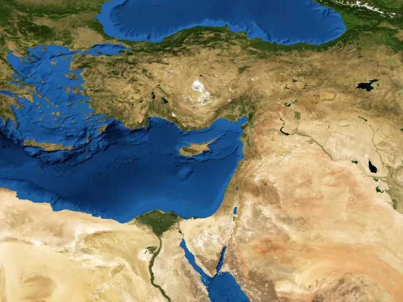 Σε ανακοίνωσή της, η NASA προβάλλει δορυφορική φωτογραφία που λήφθηκε τον Ιούνιο του 2020 στην οποία απεικονίζεται η γεωγραφική μας περιοχή με την Κύπρο στο κέντρο.