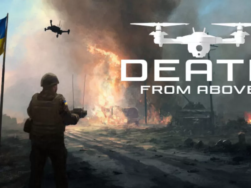 Μια εταιρεία από τη Γερμανία ανέπτυξε ένα ηλεκτρονικό παιχνίδι για τον πόλεμο στην Ουκρανία, το "Death from Above”, έναν προσομοιωτή μη επανδρωμένων αεροσκαφών. Το παιχνίδι κυκλοφόρησε στην πλατφόρμα Steam και βρίσκεται ακόμη σε φάση ανάπτυξης. Ο παίκτης αναλαμβάνει τον ρόλο ενός Ουκρανού στρατιώτη που ελέγχει ένα μη επανδρωμένο αεροσκάφος (drone), με στόχο τον βομβαρδισμό ρωσικής πολεμικής τεχνολογίας και μαχητικών αεροσκαφών.