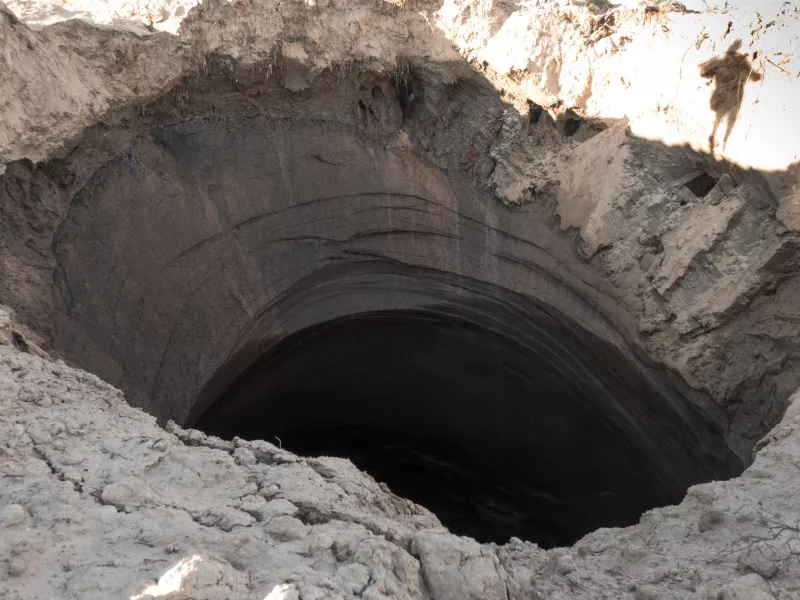 Αυτοί οι κρατήρες, γνωστοί ως γιγάντιοι κρατήρες εκπομπής αερίων (GEC), εντοπίστηκαν για πρώτη φορά στις χερσονήσους Γιαμάλ και Γκιντάν της Δυτικής Σιβηρίας το 2012 και φτάνουν σε βάθος ακόμα και τα 54 μέτρα.