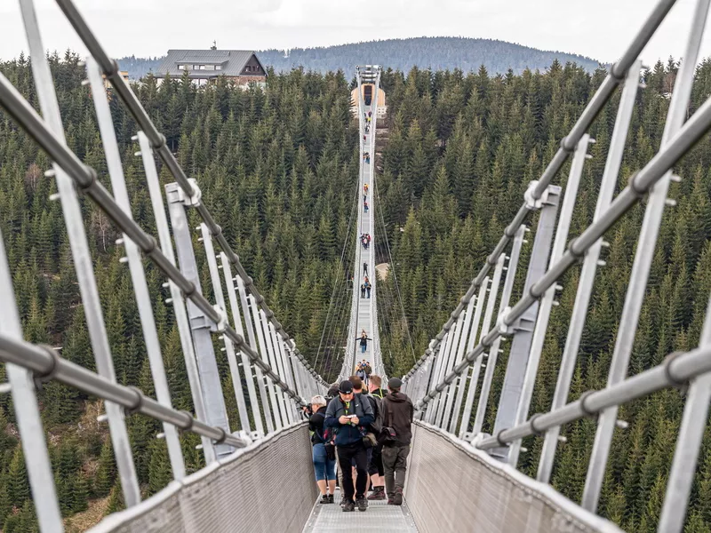 Μετά από δύο χρόνια εργασιών, η μεγαλύτερη σε μήκος κρεμαστή πεζογέφυρα στον κόσμο υποδέχεται πλέον αιθεροβάμονες -στην κυριολεξία- πεζοπόρους στην Τσεχική Δημοκρατία. Με την ονομασία Sky Bridge 721, η κρεμαστή πεζογέφυρα ενώνει δύο κορυφές του όρους Kralicky Snezník, προσφέροντας θέα που κόβει την ανάσα.