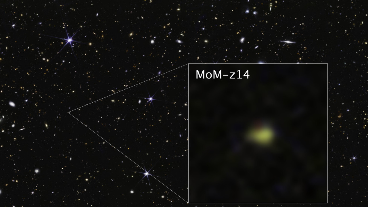 MoM-z14 may look like a little yellow smudge here, but it's our first view of a galaxy that existed just 280 million years after the big bang!https://t.co/RseTsVfbLm pic.twitter.com/usu1BUIp6U— NASA Webb Telescope (@NASAWebb) January 28, 2026