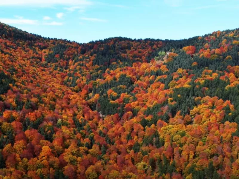 Βρισκόμαστε στα μέσα του φθινοπώρου στο δάσος του Λαϊλιά Σερρών που αποτελείται κυρίως από οξιές και δασικής Πεύκη.