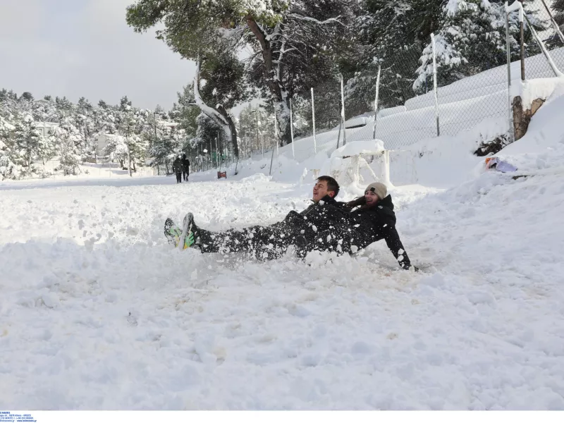 Δεν έχουν ανοίξει ακόμα οι πίστες, αλλά ο κόσμος βρήκε τρόπο να απολαύσει το χιόνι.