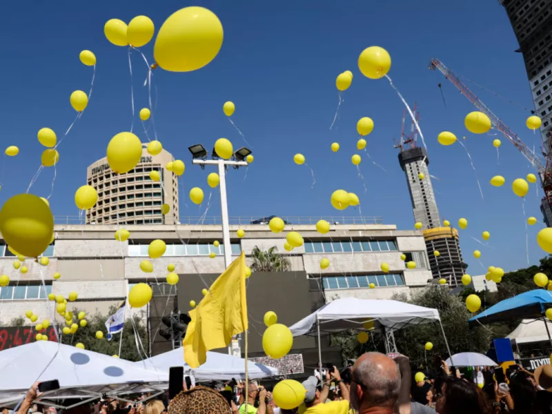 Στο Τελ Αβίβ, συγγενείς ομήρων που είχαν απαχθεί στην έφοδο άνευ προηγουμένου της Χαμάς στο νότιο Ισραήλ την 7η Οκτωβρίου 2023, το έναυσμα αυτού του πολέμου, άφησαν 700 μπαλόνια να υψωθούν στον ουρανό, στο πλαίσιο κινητοποίησης σε όλη τη χώρα με κεντρικό αίτημα να αφεθούν ελεύθεροι οι δικοί τους.