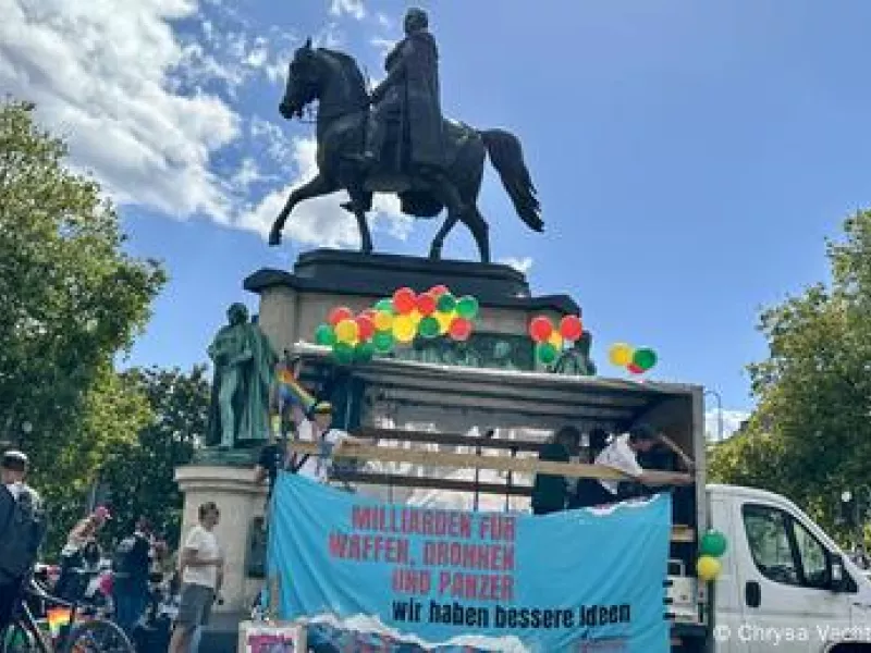 H Κολωνία γίνεται το σύμβολο του αντιμιλιταριστικού αγώνα για μία εβδομάδα. Νέοι ακτιβιστές διαδηλώνουν υπερ της ειρήνης και κατά της υποχρεωτικής στράτευσης.Στην Κολωνία κορυφώνεται σήμερα η δράση του δικτύου «Αφοπλίστε την Rheinmetall» (Rheinmetal Entwaffnen) με μία αντιμιλιταριστική πορεία στο κέντρο της πόλης. Κυρίως νέοι, αλλά και πιο έμπειροι ακτιβιστές από όλη τη Γερμανία κατασκηνώνουν τις τελευταίες ημέρες στην πόλη του Ρήνου.
