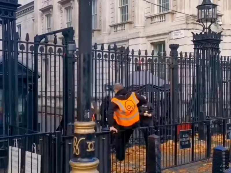 Στις 11:15 π.μ.,τοπικοί ώρα ακτιβιστές συνωστίστηκαν προς την είσοδο της Ντάουνινγκ Στριτ, όπου κατοικεί ο πρωθυπουργός Ρίσι Σουνάκ, με κάποιους να προσπαθούν να σκαρφαλώσουν στις πύλες και άλλους να μπλοκάρουν την είσοδο καθισμένοι στο δρόμο.