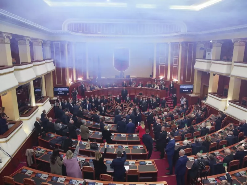 Βουλευτές της αντιπολίτευσης εμπόδισαν τον Ράμα να μιλήσει στο βήμα, ενώ στη συνέχεια του πέταξαν το βιβλίο του Συντάγματος.