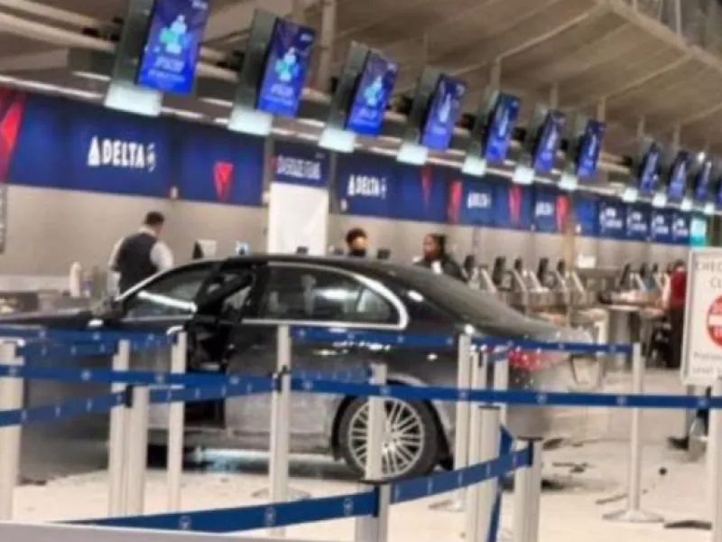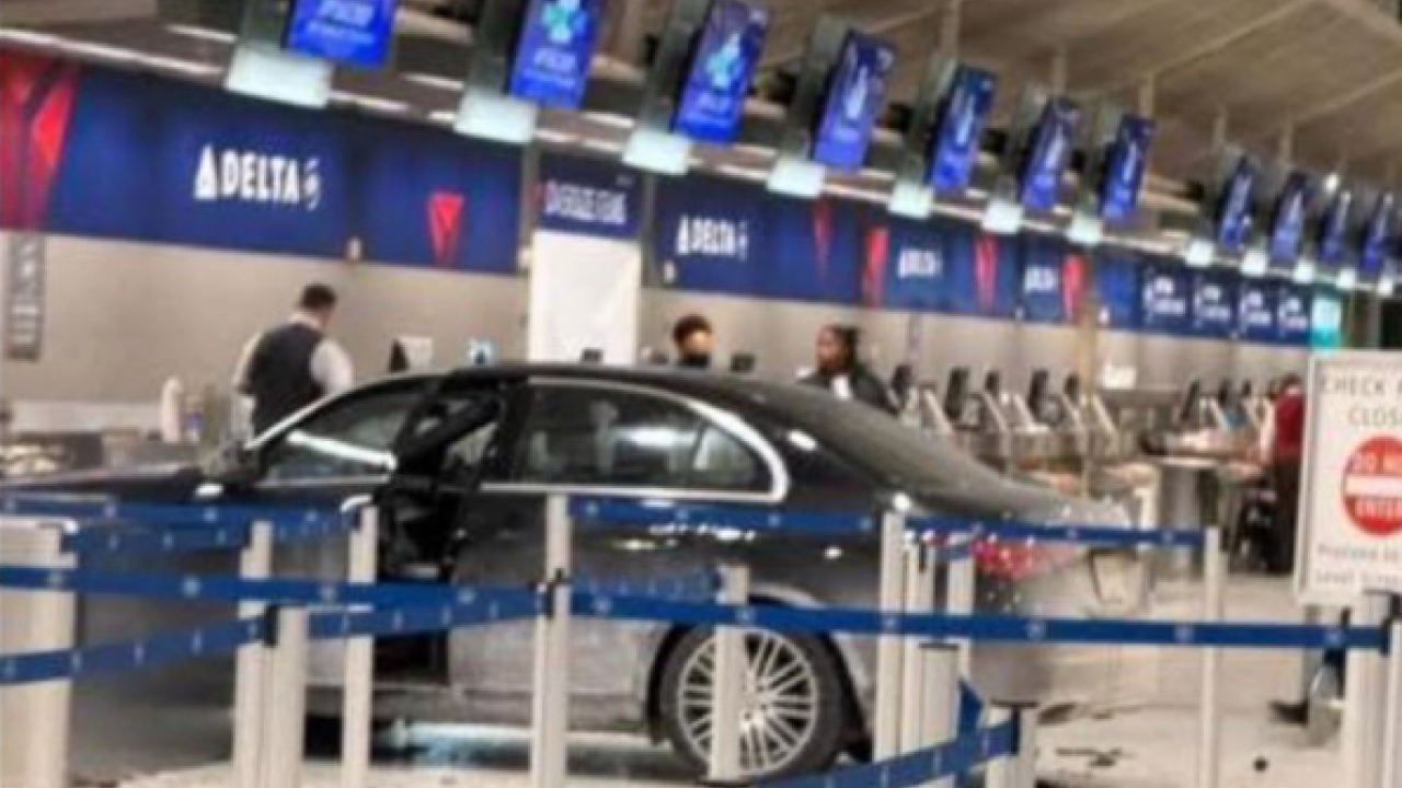 Βίντεο που δημοσιεύτηκε στα μέσα κοινωνικής δικτύωσης έδειξε ένα μπλε, τετράθυρο σεντάν σταματημένο, με το καπό του και το φορτηγό ανοιχτό, μπροστά από τα γκισέ της Delta Air Lines στο σημείο αναχωρήσεων.