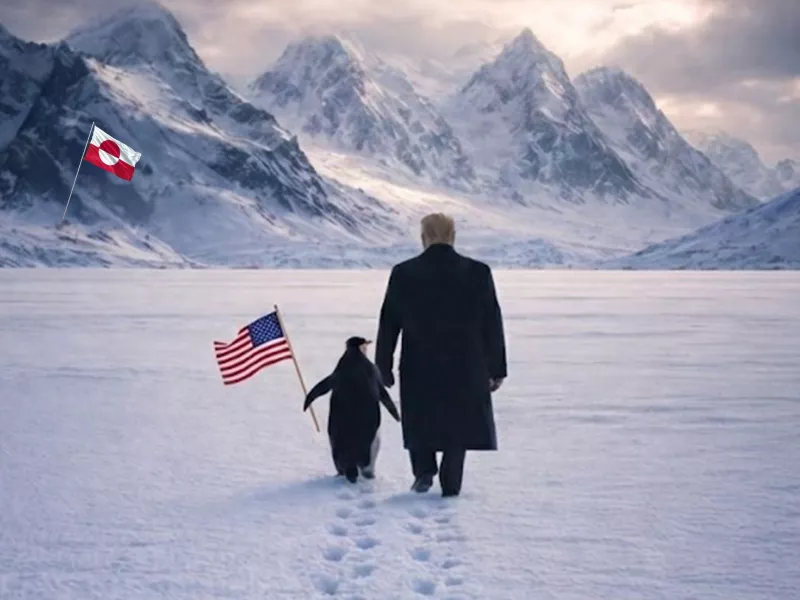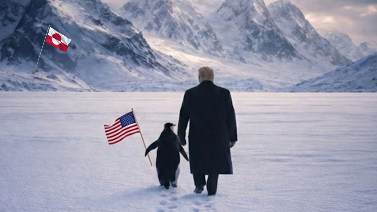 Ένα νέο meme του Λευκού Οίκου που απεικονίζει τον Πρόεδρο Ντόναλντ Τραμπ να διασχίζει ένα χιονισμένο τοπίο – υποτίθεται στην Γροιλανδία - μαζί με έναν μικρό πιγκουίνο που κρατά μια αμερικανική σημαία - έχει προκαλέσει κύμα αντιδράσεων στα μέσα κοινωνικής δικτύωσης.