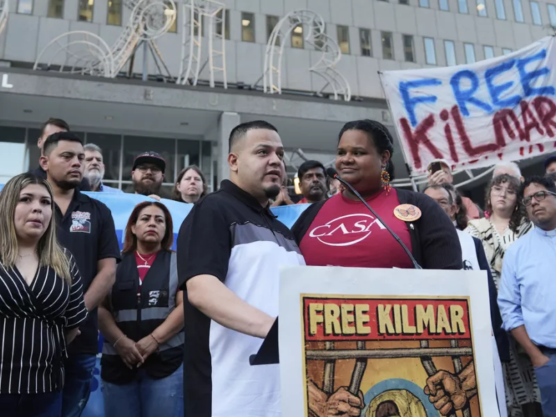 Πριν μπει στα γραφεία της ICE στη Βαλτιμόρη, ο Κίλμαρ Αμπρέγο Γκαρσία μίλησε για λίγο στο πλήθος υποστηρικτών του έξω από το κτίριο.
