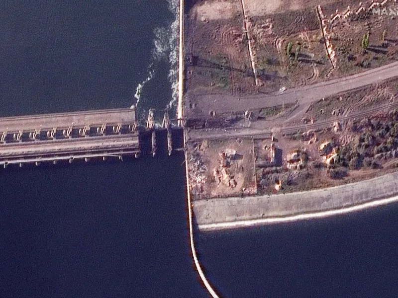 Παράλληλα, σοβαρές ζημιές έχουν προκληθεί σε ένα από τα σημαντικότερα φράγματα στον ποταμό Ντνίπρο, στο φράγμα Νόβα Κακόβκα. Το νερό ρέει από τρεις αυλακωτές πύλες στο φράγμα, όπου βρίσκεται ένα μεγάλο υδροηλεκτρικό έργο. Μια φωτογραφία, που εμφανίστηκε στα μέσα κοινωνικής δικτύωσης το απόγευμα της Παρασκευής, έδειχνε το νερό που κυλούσε και τμήματα της γέφυρας να λείπουν.