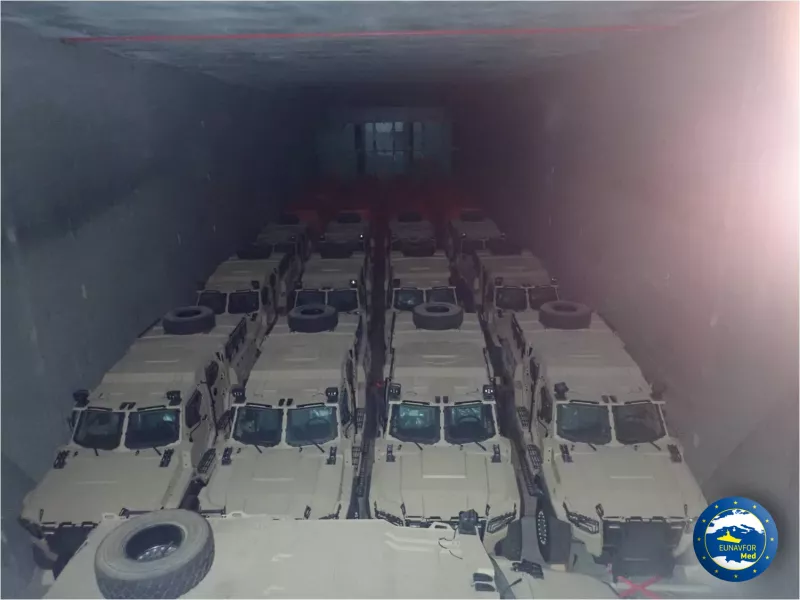 Dozens of vehicles modified for military use were discovered during an inspection of 🚢 MV MEERDIJK.