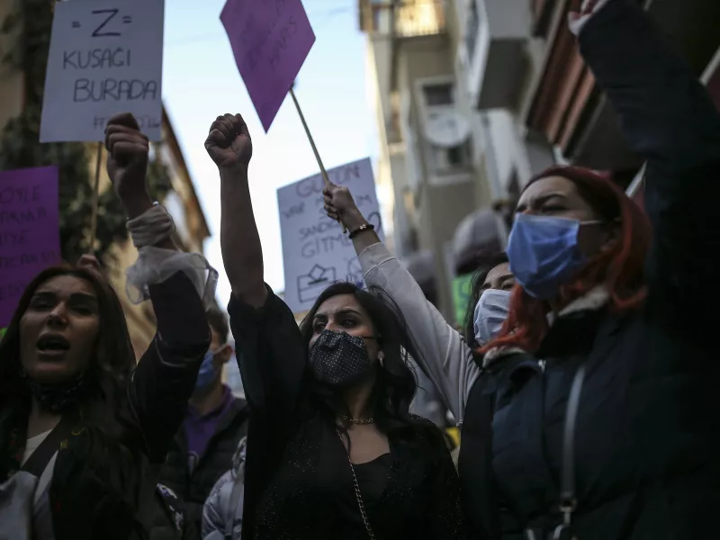 «Ακύρωσε την απόφασή σου, εφάρμοσε τη συνθήκη!» φώναζαν οι χιλιάδες γυναίκες και άνδρες που είχαν συγκεντρωθεί στο Καντίκιοϊ, στην Κωνσταντινούπολη. Οι διαδηλωτές κρατούσαν φωτογραφίες δολοφονημένων γυναικών και πλακάτ όπου είχαν γράψει συνθήματα όπως «Οι γυναίκες θα κερδίσουν αυτόν τον πόλεμο».