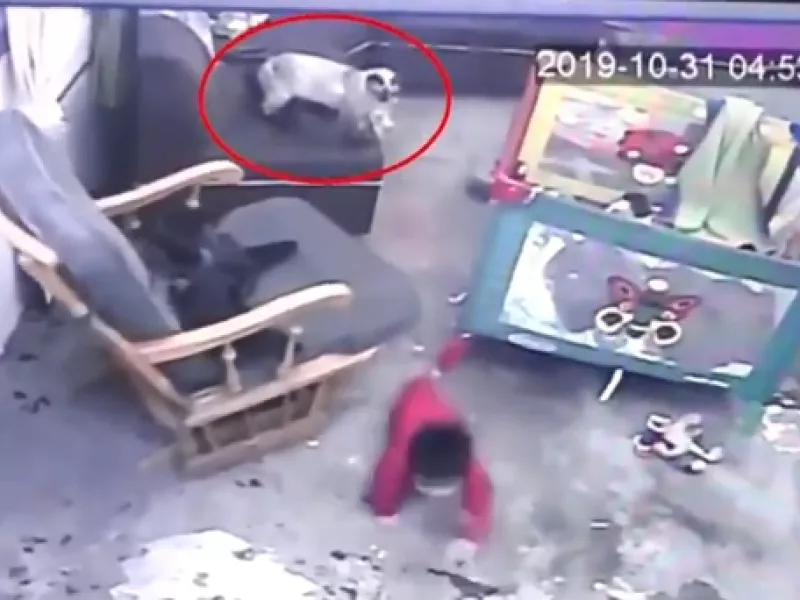 Ένα εκπληκτικό βίντεο από ένα σπίτι στην Μπογκοτά Κολομβίας δείχνει τη στιγμή που μια γάτα φαίνεται να σώζει ένα μωρό προτού πέσει από τις σκάλες.