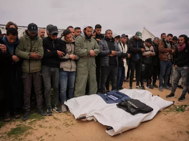 Πήγαν να τιμήσουν τη μνήμη τριών συναδέλφων τους, συμπεριλαμβανομένου ενός που συνεργαζόταν συχνά με το Γαλλικό Πρακτορείο, που σκοτώθηκαν την προηγουμένη, σε βομβαρδισμό του ισραηλινού στρατού, που ανέφερε πως στοχοποίησε «ύποπτους» χειριστές drone.