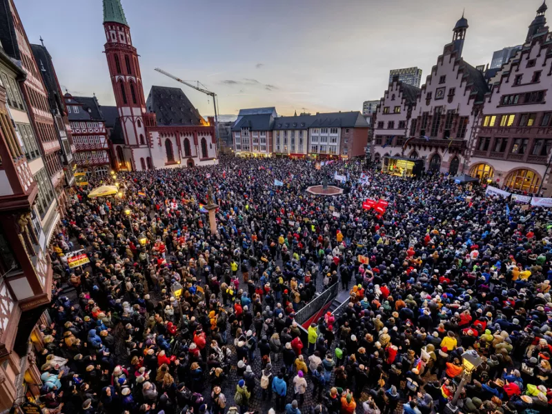 Χιλιάδες άνθρωποι διαδήλωσαν σήμερα κατά της ακροδεξιάς εξτρεμιστικής πολιτικής και του κόμματος Εναλλακτική για τη Γερμανία (AfD) στην Φρανκφούρτη, στο πλαίσιο του κύματος διαμαρτυριών κατά του εξτρεμισμού στην χώρα.