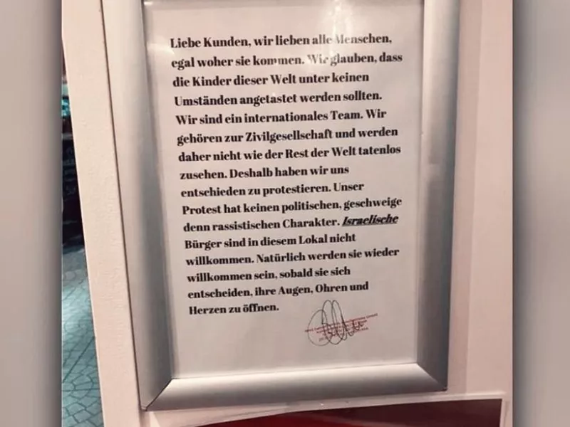 Την οργή της εβραϊκής κοινότητας και της ισραηλινής πρεσβείας προκάλεσε η απόφαση ενός ιδιοκτήτη πιτσαρίας στη γερμανική πόλη Φυρτ, στο κρατίδιο της Βαυαρίας, να απαγορεύσει την είσοδο σε όλους τους Ισραηλινούς πελάτες, σε ένδειξη διαμαρτυρίας για τον πόλεμο στη Λωρίδα της Γάζας.
