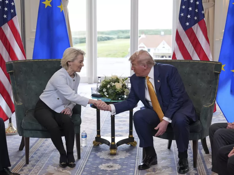 Κατά της συνομιλίες ανάμεσα στην Ούρσουλα φον ντερ Λάιεν και τον Ντόναλντ Τραμπ στη Σκωτία, η πρόεδρος της Κομισιόν κατάφερε να συνάψει συμφωνία για δασμούς 15% σε όλα τα ευρωπαϊκά προϊόντα που εξάγονται στις ΗΠΑ, σημαντικά χαμηλότερους από το 30% που είχε αρχικά απειλήσει να επιβάλει η Ουάσιγκτον.