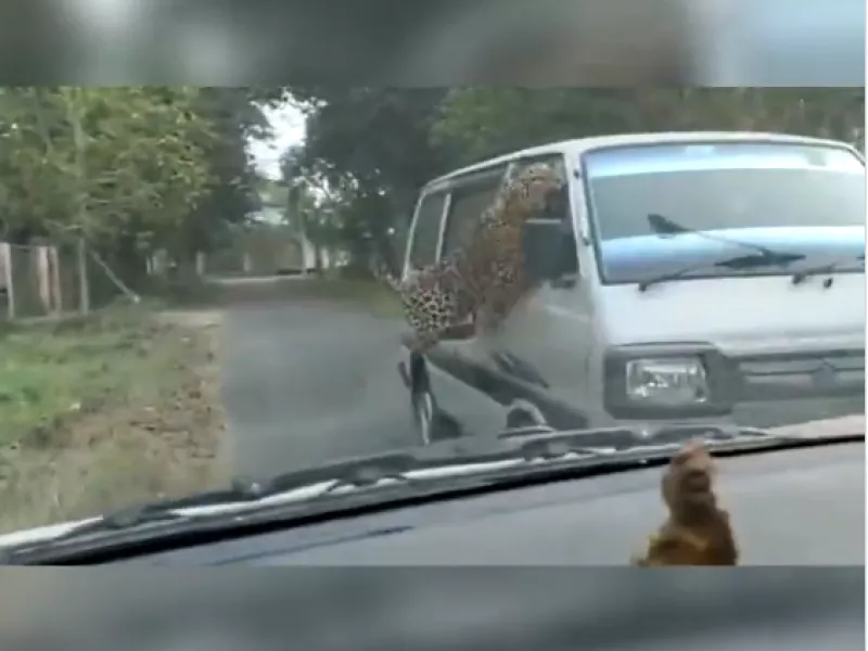 Σε βίντεο που κατέγραψαν δασικοί υπάλληλοι, η λεοπάρδαλη εθεάθη να επιτίθεται σε βανάκι που μετέφερε προσωπικό και στη συνέχεια σε ένα φορτηγό με πολίτες.
