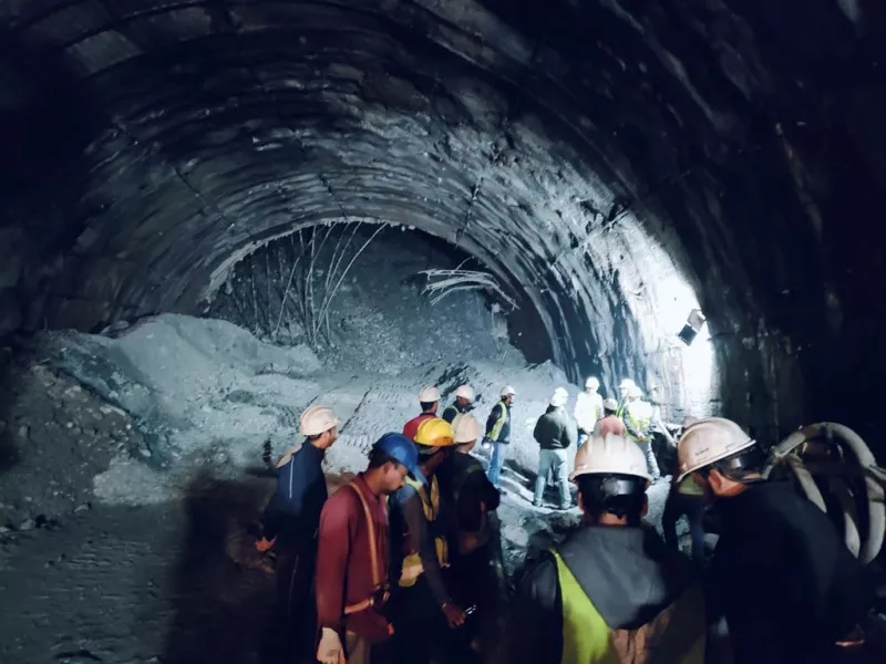 Η σήραγγα μήκους 4,5 χιλιομέτρων που κατασκευαζόταν σε αυτοκινητόδρομο, μέρος ενός δρόμου ινδουιστικού προσκυνήματος στο κρατίδιο Ουταρχάντ, κατέρρευσε περίπου στις 5:30 τα ξημερώματα της Κυριακής.