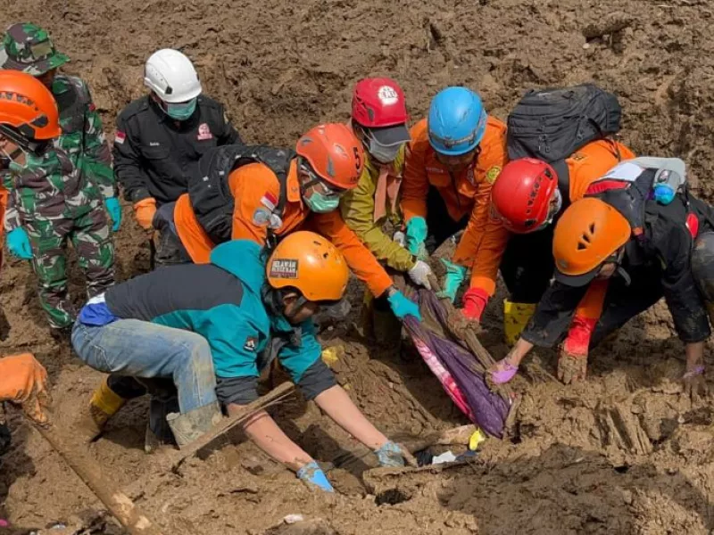 Έπειτα από καταρρακτώδεις βροχοπτώσεις, πελώρια κατολίσθηση έθαψε προχθές Σάββατο περί τις 02:30 (τοπική ώρα· στις 21:30 της Παρασκευής ώρα Ελλάδας) σπίτια σε δυο χωριά, κάπου 25 χιλιόμετρα από την Μπαντούνγκ, την τέταρτη πόλη της χώρας.