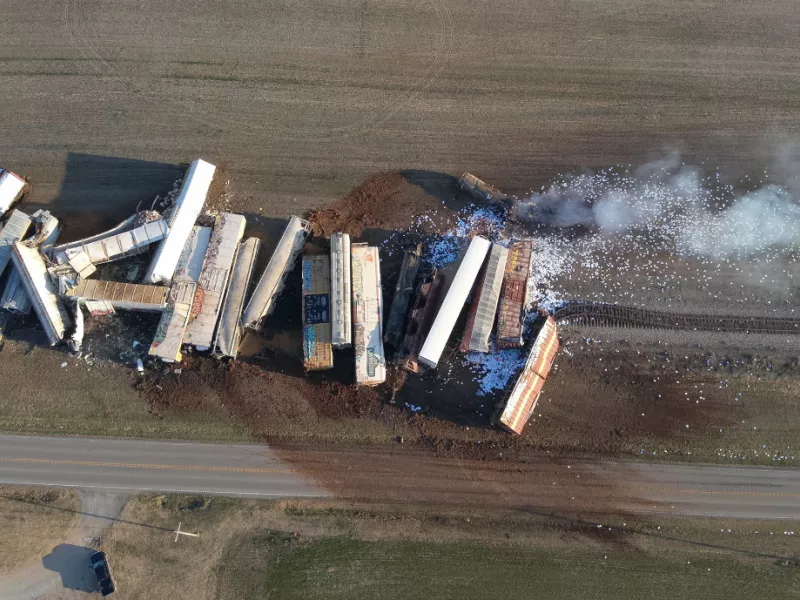 Ένα από τα 30 βαγόνια που εκτροχιάστηκαν – το οποίο μετέφερε υγρό θείο, που χρησιμοποιείται ευρέως σε λιπάσματα – τυλίχθηκε στις φλόγες. Οι αρχές συνέστησαν στους κατοίκους της περιοχής να παραμείνουν στα σπίτια τους και να κρατήσουν κλειστά τα παράθυρα λόγω του τοξικού νέφους.