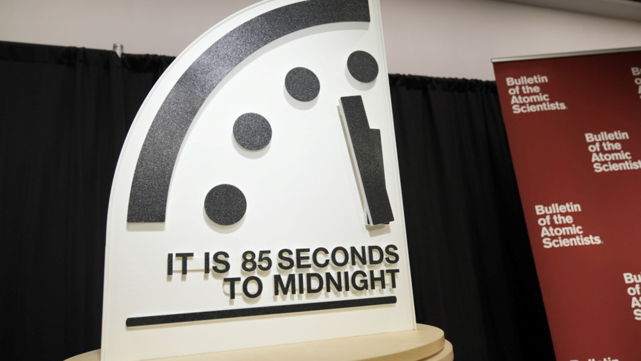 Το Ρολόι της Αποκάλυψης (Doomsday Clock), ένα ισχυρό σύμβολο της επικινδυνότητας που διατρέχει ο πλανήτης μας εξαιτίας ποικίλων απειλών, βρίσκεται πλέον πιο κοντά από ποτέ στα μεσάνυχτα. Η φετινή ένδειξη του ρολογιού, που αφορά στο πόσο απέχουμε από μια παγκόσμια καταστροφή, ορίστηκε από το Bulletin of the Atomic Scientists στα 85 δευτερόλεπτα πριν τα μεσάνυχτα, ήτοι τέσσερα δευτερόλεπτα πιο κοντά σε σχέση με πέρυσι.