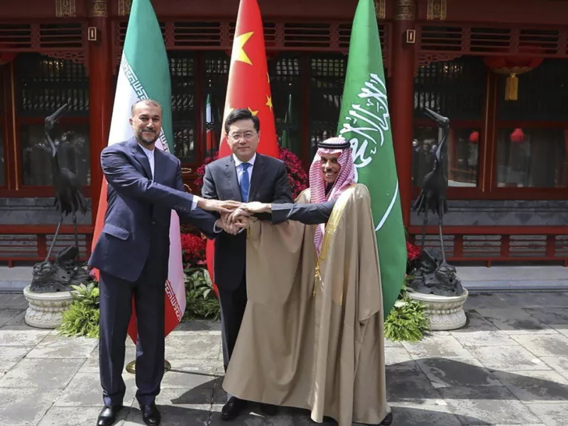 Οι επικεφαλής της διπλωματίας του Ιράν και της Σαουδικής Αραβίας, Χοσεΐν Αμίρ-Αμπντολαχιάν και Φαϊζάλ μπιν Φαρχάν, συναντήθηκαν την Πέμπτη στο Πεκίνο για να θέσουν σε εφαρμογή την εξομάλυνση των σχέσεων μεταξύ των δύο δυνάμεων της Μέσης Ανατολής έπειτα από χρόνια μεγάλης έντασης.