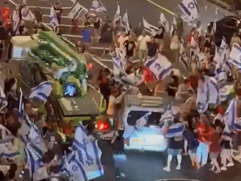 Ένα αυτοκίνητο έπεσε πριν από λίγο πάνω σε διαδηλωτές στο κεντρικό Ισραήλ, χτυπώντας αρκετούς από αυτούς.
