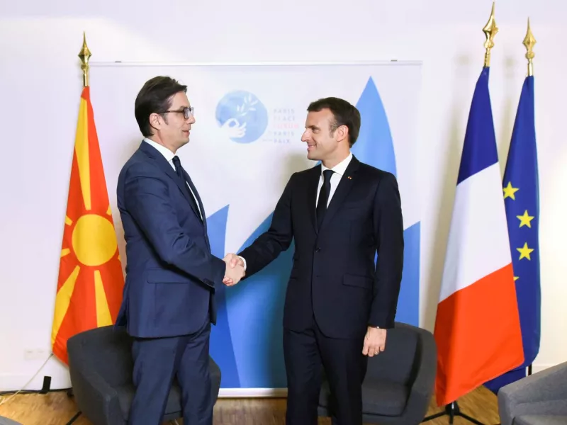 Σε καλό κλίμα αλλά χωρίς απτά αποτελέσματα για τα Σκόπια, ολοκληρώθηκε η συνάντηση του Γάλλου προέδρου Εμανουέλ Μακρόν με τον πρόεδρο της Βόρειας Μακεδονίας, Στέβο Πενταροφσκι στο Παρίσι, στη σκιά του γαλλικού μπλόκου στην έναρξη ενταξιακών διαπραγματεύσεων της χώρας με την ΕΕ.