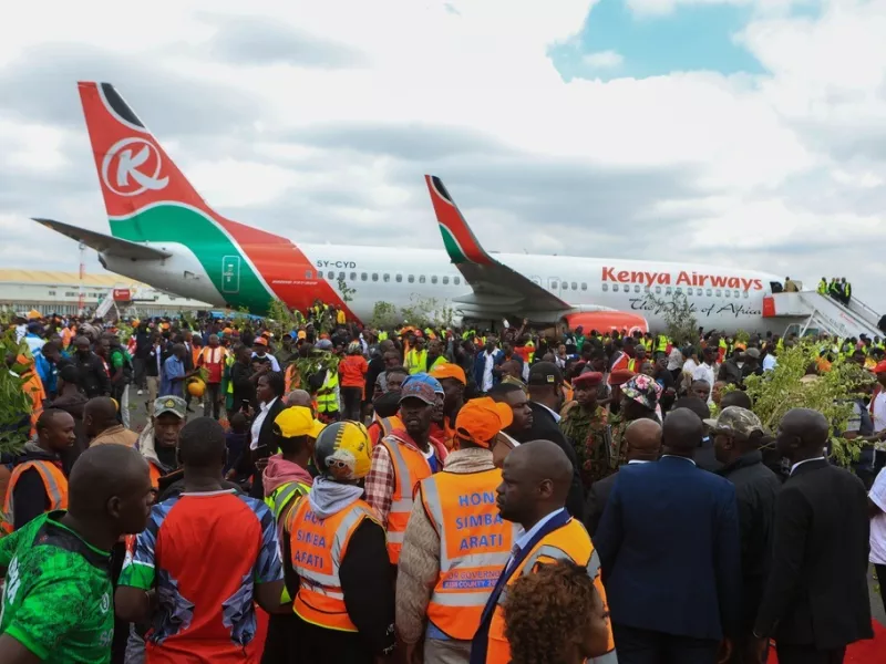 Από το πρωί, μεγάλα πλήθη συνόδευσαν την άφιξη στη χώρα της σορού του «Μπάμπα» (πατέρας), όπως τον αποκαλούσαν. Αφού προσγειώθηκε το αεροσκάφος που μετέφερε το φέρετρο, γύρω στις 9.30 το πρωί, η κενυατική υπηρεσία πολιτικής αεροπορίας αναγκάστηκε να διακόψει προσωρινά τη λειτουργία του αεροδρομίου Τζόμο Κενιάτα «για να αποκαταστήσει την τάξη και την ασφάλεια».