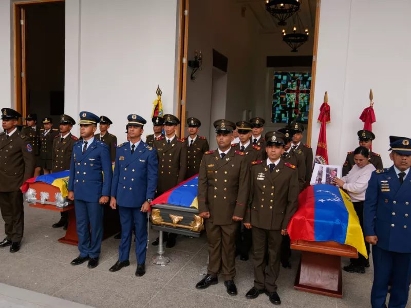 Συγγενείς με δάκρυα στα μάτια, φέρετρα καλυμμένα με σημαίες της Βενεζουέλας, ομιλίες για «το θάρρος», «την ανδρεία», την «τιμή», την «πίστη» των πεσόντων... Στεφάνια με λουλούδια και φωτογραφίες των νεκρών συνόδευαν τα φέρετρα, όπως και τιμητικά αγήματα.