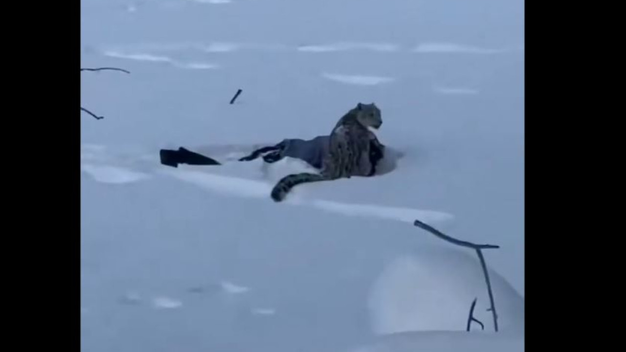 Βίντεο δείχνει την τουρίστρια παγιδευμένη κάτω από τη λεοπάρδαλη στο βαθύ χιόνι, πριν τη βοηθήσουν να σηκωθεί, κρατώντας το πρόσωπό της γεμάτο αίματα.