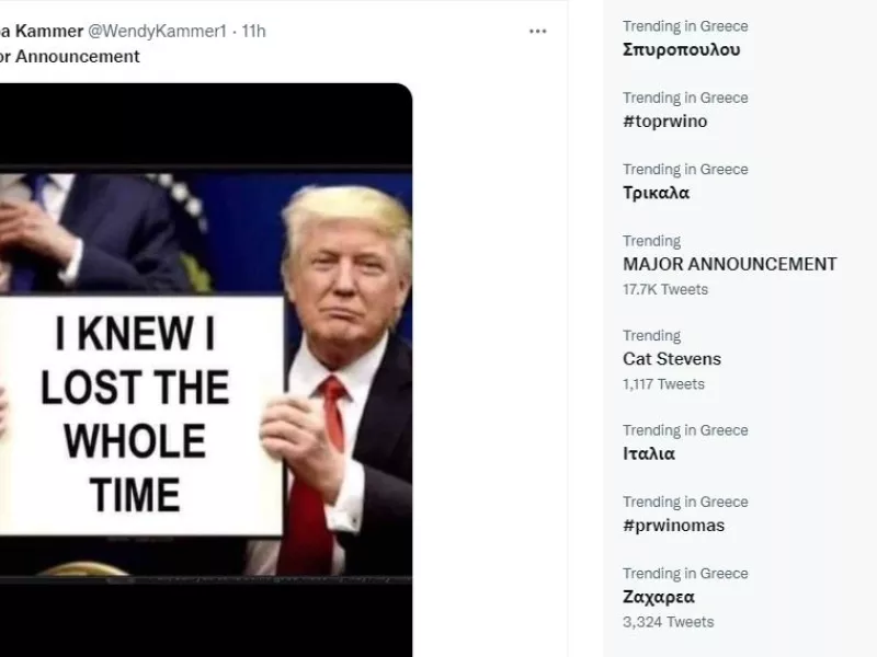 Το MAJOR ANNOYNCEMENT (με τα πομπώδη κεφαλαία του πρώην προέδρου) είναι στα trends της πλατφόρμας για ώρες και οι περισσότεροι χρήστες «τρολάρουν» τον Τραμπ.