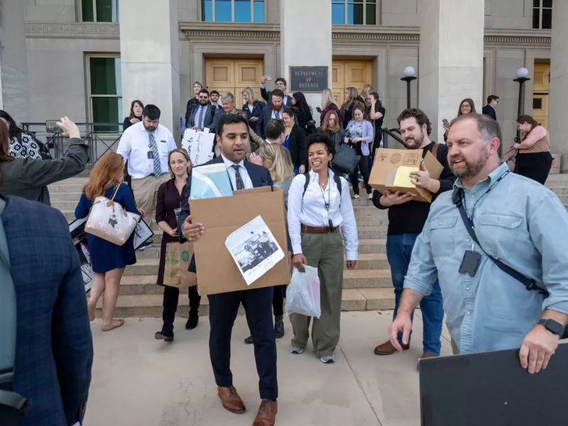 Δεκάδες δημοσιογράφοι και τηλεοπτικά συνέργεια από 30 μεγάλους ειδησεογραφικούς οργανισμού των ΗΠΑ παρέδωσαν τις διαπιστεύσεις τους και έφυγαν από το Πεντάγωνο, αφού αρνήθηκαν να υπογράψουν τη νέα πολιτική «λογοκρισίας» του αμερικανικού υπουργείου Άμυνας.