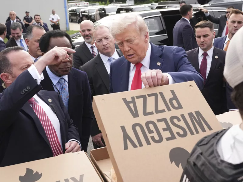 Επέστρεψε στον Λευκό Οίκο αφού εκφώνησε σύντομη ομιλία και συμμετείχε για κάποια ώρα στη διανομή πίτσας και χάμπουργκερ.