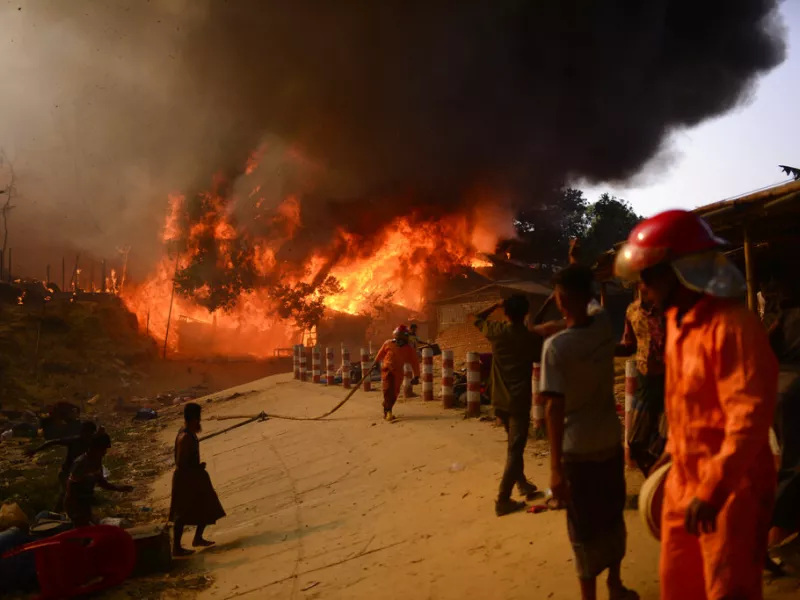 A massive fire has torn through a crowded camp for Rohingya refugees in Cox’s Bazar in Bangladesh.