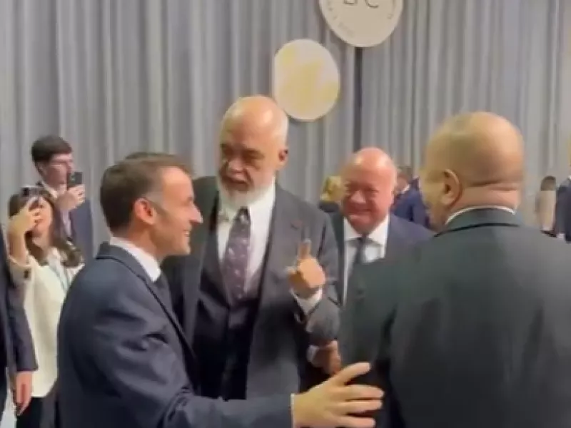 «Πρέπει να μας ζητήσεις συγγνώμη… γιατί δεν μας έδωσες συγχαρητήρια για τη συμφωνία ειρήνης που έκανε ο πρόεδρος Τραμπ ανάμεσα στην Αλβανία και το Αζερμπαϊτζάν», είπε ο Ράμα στον Μακρόν, προκαλώντας τα γέλια του Αλίγιεφ.