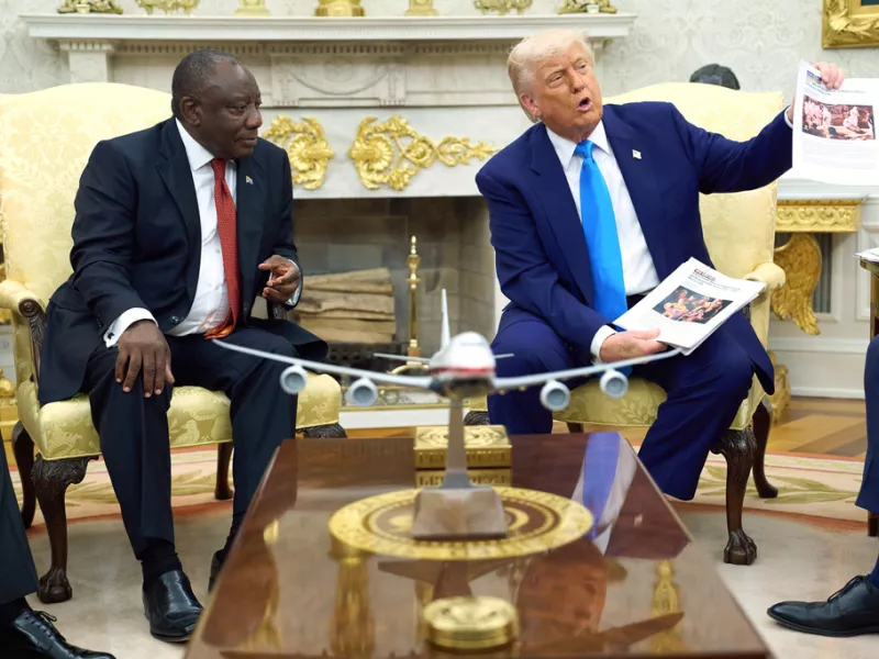 Ο Τραμπ, σε συνάντηση στον Λευκό Οίκο τον Μάιο, είχε επικρίνει τον πρόεδρο της Νότιας Αφρικής, Σίριλ Ραμαφόσα, υποστηρίζοντας ότι οι λευκοί αγρότες στη χώρα «διώκονται και δολοφονούνται». Κατά τη διάρκεια της συνάντησης, παρουσιάστηκε και βίντεο με υποτιθέμενους τάφους λευκών αγροτών, το οποίο όμως αποδείχθηκε προερχόταν από διαδήλωση του 2020, όπου οι σταυροί αντιπροσώπευαν δολοφονίες που είχαν γίνει σε βάθος ετών.