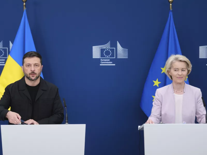 Η πρόεδρος της Ευρωπαϊκής Επιτροπής, Ούρσουλα φον ντερ Λάιεν, σε κοινή συνέντευξη Τύπου με τον πρόεδρο της Ουκρανίας, Βολοντίμιρ Ζελένσκι, παρουσίασε από τις Βρυξέλλες τις βασικές της θέσεις για την Ουκρανία, ενόψει της αυριανής συνάντησης στον Λευκό Οίκο με τον πρόεδρο των ΗΠΑ, Ντόναλντ Τραμπ.