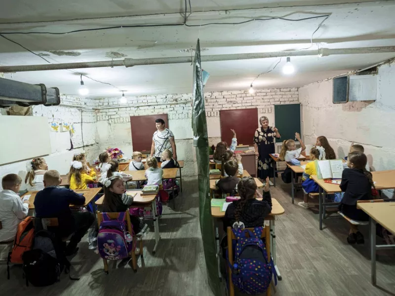 Στο Bobryk, ένα χωριό στη βόρεια περιοχή Σούμι — όχι μακριά από το μέτωπο — ένα σχολείο μετέφερε όλες τις αίθουσες διδασκαλίας του σε ένα υπόγειο, ώστε οι μαθητές, των οποίων η εκπαίδευση είχε ήδη επηρεαστεί λόγω των περιοριστικών μέτρων για τον COVID, να μπορούν να παρακολουθήσουν μαθήματα δια ζώσης. «Πρέπει να κάνουμε τα πάντα για να μη χαθεί αυτή η γενιά», δήλωσε ο διευθυντής Oleksii Korenivskyi. «Ο χρόνος είναι το μόνο πράγμα που δεν μπορείς να αναπληρώσεις. Αυτή είναι η μελλοντική μας γενιά και πρέπει να της δώσουμε ό,τι έχουμε».