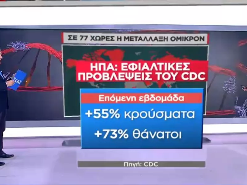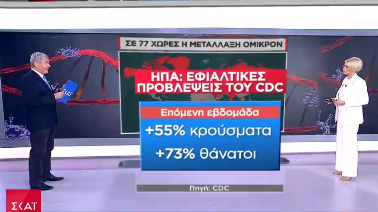 Σε 77 χώρες είναι πλέον η μετάλλαξη Όμικρον. Εφιαλτικές είναι οι προβλέψεις του CDC που αναφέρει πως την επόμενη εβδομάδα θα έχουμε επιπλέον +55% κρούσματα και +73% θανάτους ( συγκεκριμένα 15.600 θανάτους).