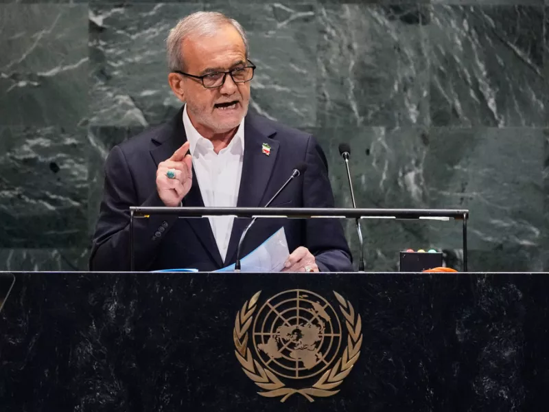 Μιλώντας για το Ισραήλ, ο πρόεδρος του Ιράν, Μασούντ Πεζεσκιάν, αναφέρθηκε από το βήμα της Γενικής Συνέλευσης στη «γενοκτονία στη Γάζα», την «καταστροφή των υποδομών στη Συρία» και τις «επιθέσεις στη Υεμένη». «Και όλα αυτά με την πλήρη υποστήριξη του πιο βαριά οπλισμένου καθεστώτος στον πλανήτη και με το πρόσχημα της αυτοάμυνας», δήλωσε και διερωτήθηκε για το ποιος είναι αυτός που διαταράσσει την ανθρωπότητα.