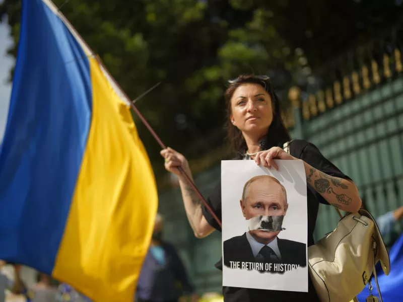 Μία από τις ετικέτες κατηγορούσε τον ρωσικό στρατό ότι βομβάρδισε ένα θέατρο στην πόλη-λιμάνι της Μαριούπολης, όπου είχαν καταφύγει περίπου 400 άνθρωποι - μια κατηγορία που η Μόσχα δήλωσε τότε ότι ήταν ψευδής.