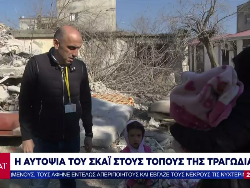 Ο Μανώλης Κωστίδης με την κάμερα του ΣΚΑΙ και τον Αντώνη Μισιρλή ξεκινούν το οδοιπορικό και φτάνουν στο επίκεντρου του σεισμού, στην πόλη Καχραμαν Μαράς, στην περιοχή στην οποία, μαζί με την Αντιόχεια, καταγράφονται ίσως οι μεγαλύτερες καταστροφές με τίποτα να μην έχει μείνει όρθιο μετά το καταστροφικό ξέσπασμα του σεισμού.