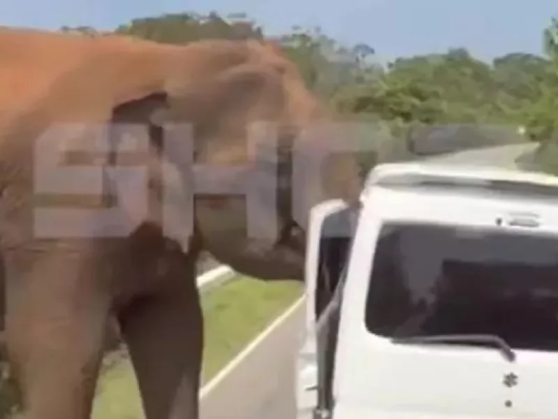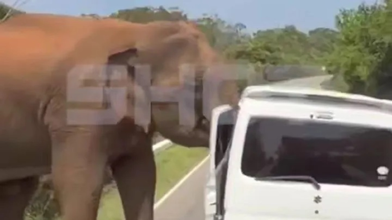 Εφιαλτικές στιγμές έζησαν στη Σρι Λάνκα Ρώσοι τουρίστες, όταν ελέφαντας επιτέθηκε σε mini bus που τους μετέφερε, ξεριζώνοντας μια πόρτα ενώ έψαχνε για φρούτα.