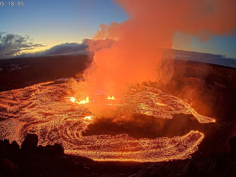 Λάβα ξεπηδάει από τον κρατήρα του Κιλαουέα, το οποίο είναι ένα από τα πιο ενεργά ηφαίστεια στον κόσμο.