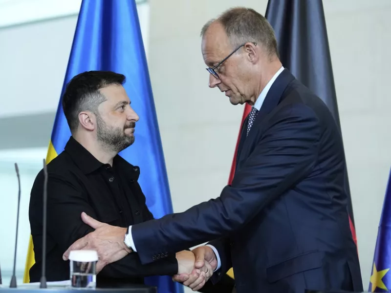«Είπα στον Αμερικανό πρόεδρο και σε όλους τους Ευρωπαίους εταίρους μας ότι ο Πούτιν μπλοφάρει», δήλωσε ο Ζελένσκι σε κοινή συνέντευξη Τύπου στο Βερολίνο με τον Γερμανό καγκελάριο Φρίντριχ Μερτς.