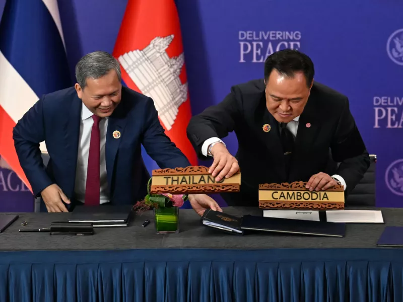 «Οι δύο πλευρές συμφωνούν σε άμεση κατάπαυση του πυρός, με την υπογραφή αυτής της κοινής δήλωσης, η οποία τίθεται σε ισχύ στις 12:00 [τοπική ώρα, 07:00 ώρα Ελλάδας] της 27ης Δεκεμβρίου 2025», αναφέρει η συμφωνία που υπεγράφη από τους υπουργούς Άμυνας των δύο γειτονικών κρατών στη νοτιοανατολική Ασία.
